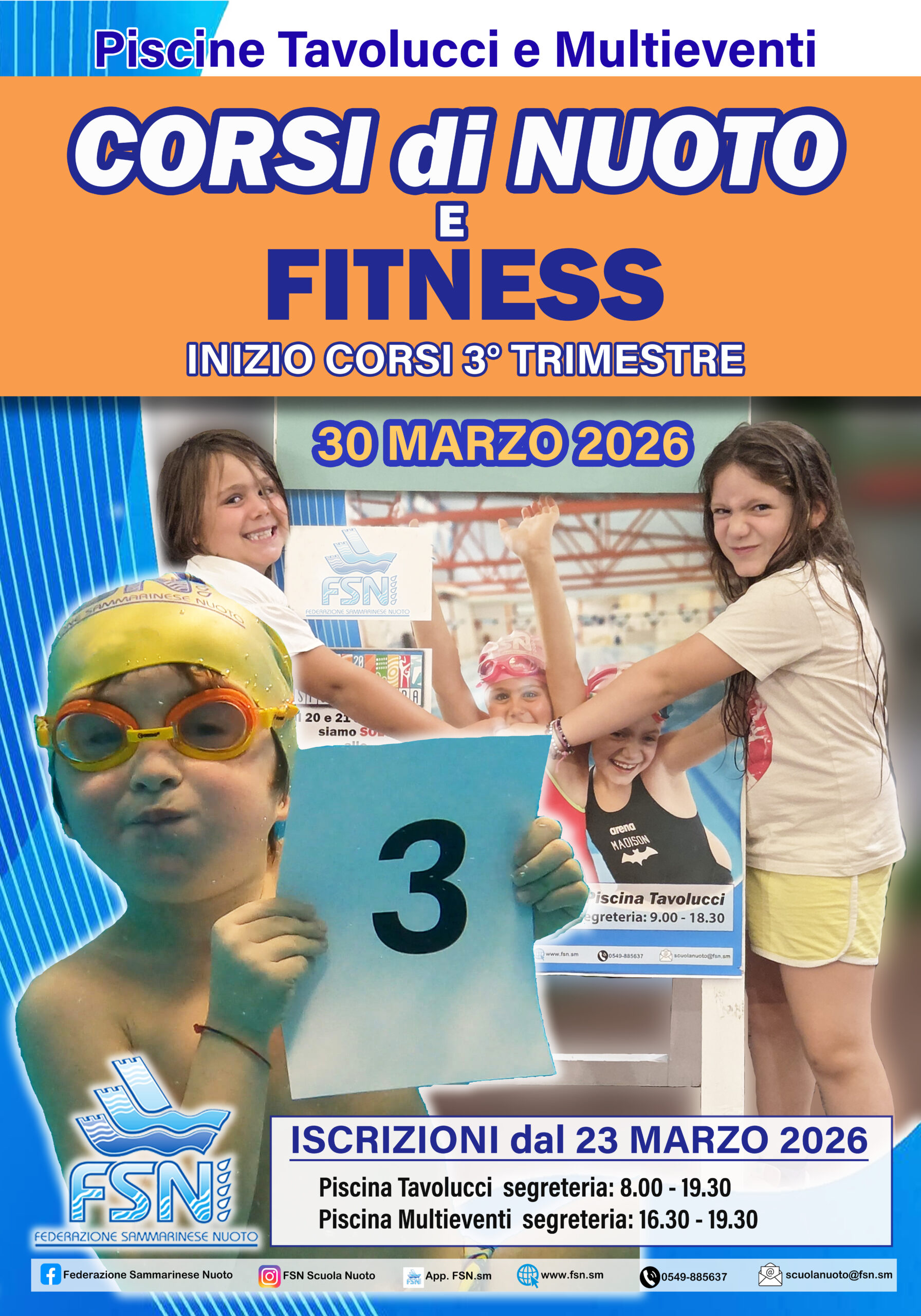 La Federazione Sammarinese Nuoto, nata nel 1979, è affiliata al Comitato Olimpico Nazionale Sammarinese (CONS) e alle confederazioni di World Aquatics, European Aquatics, COMEN, COLAN, e si prefigge lo scopo di promuovere le discipline acquatiche nella Repubblica di San Marino.