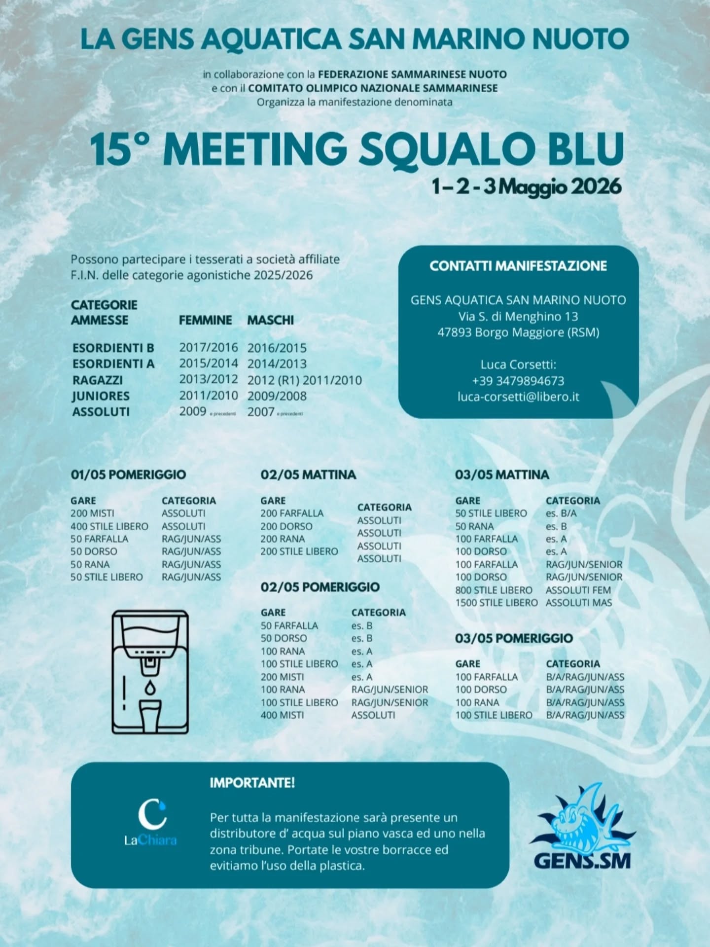 15° Meeting Squalo Blu 1/3 maggio 2026 – Organizzato da Gens Aquatica San Marino
