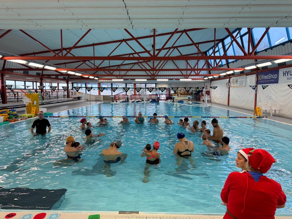 Temperatura adeguata all’età dei piccoli, mediamente max 10 bambini e genitori insieme in vasca con un coordinatore a bordo vasca e 2/3 istruttori in acqua. Spazio dedicato. Fasciatoi negli spogliatoi.
