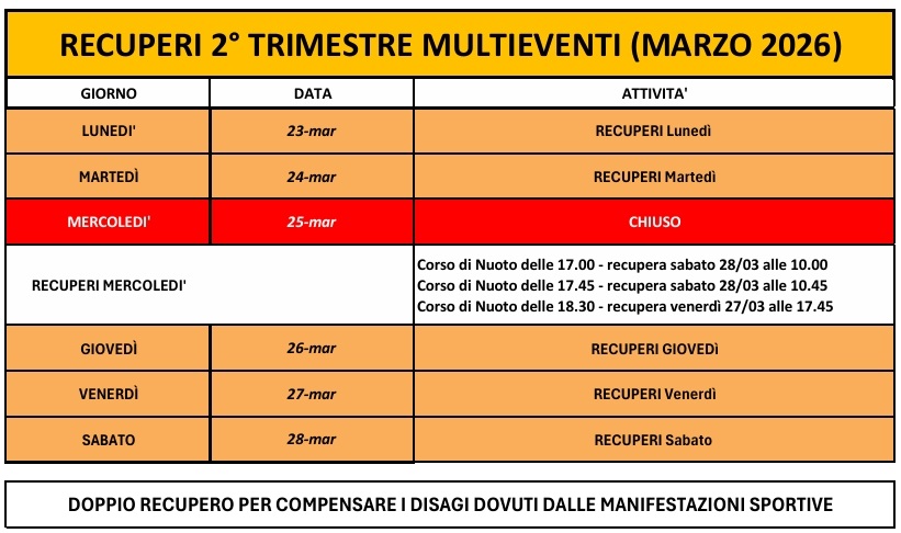 PISCINA TAVOLUCCI - ORARI NUOTO LIBERO